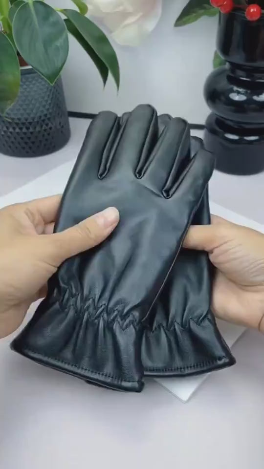 1Pair Unisex Black Leather Gloves Winter Warm Windproof High Quality Soft Gloves Outdoor Cycling Skiing Running Motorbike Gloves
